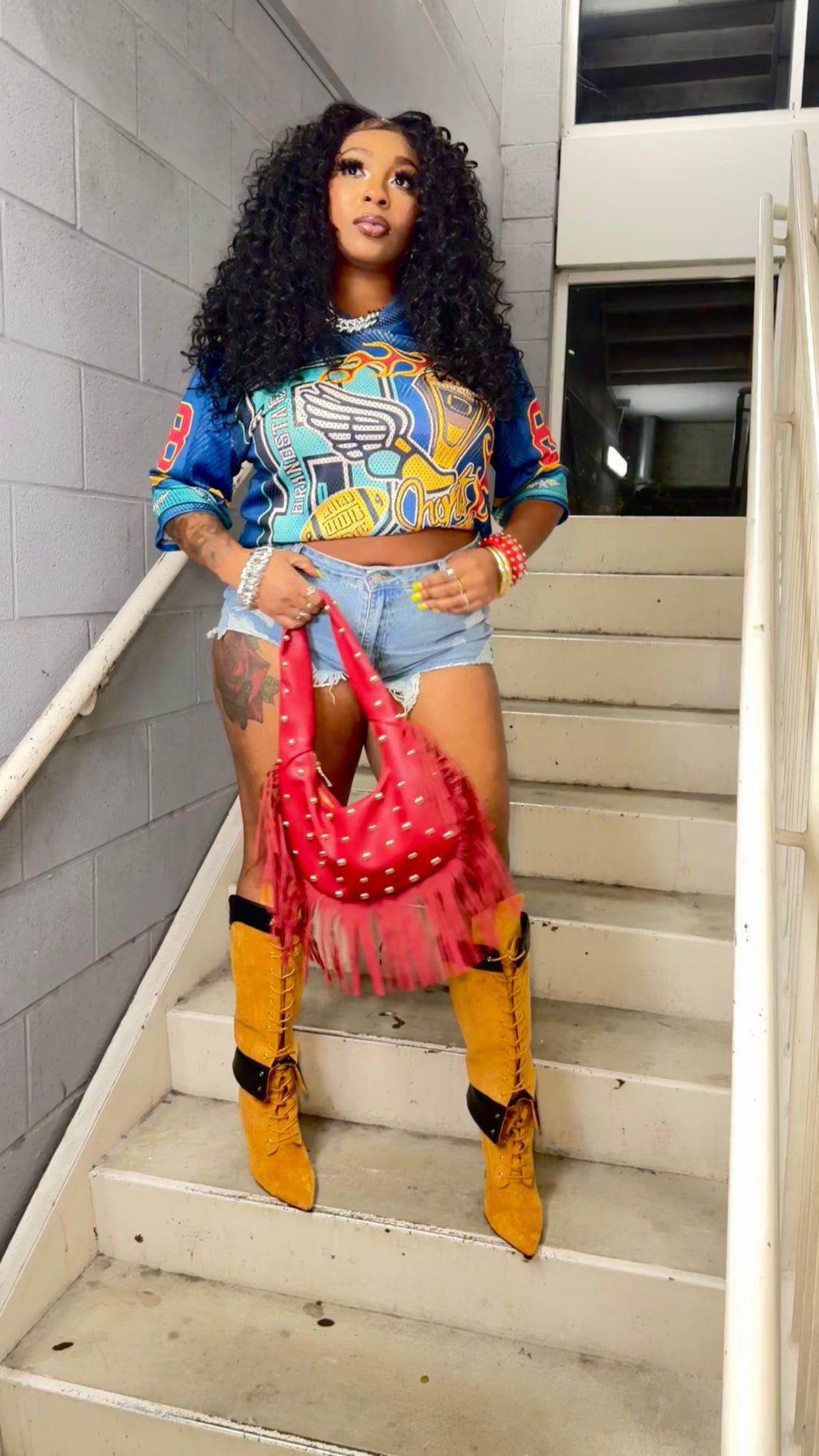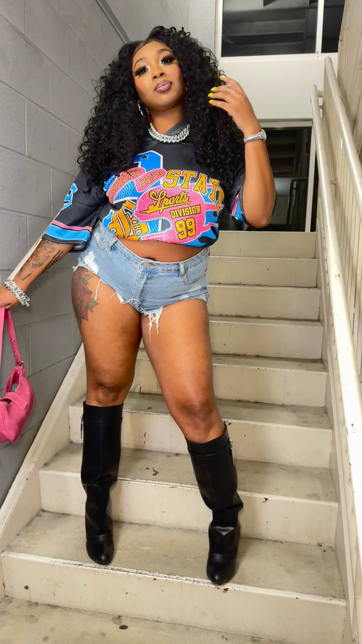 Model Wearing Jersey Tucked Inside Bra